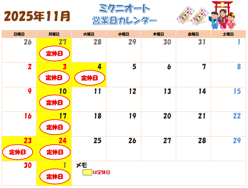 2025年11月カレンダー